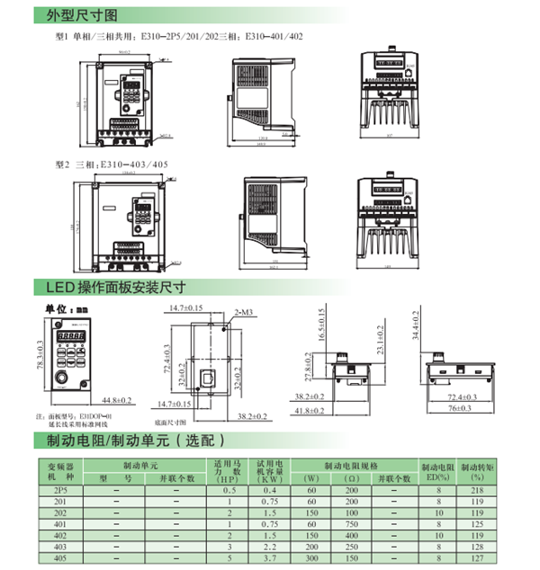 東元變頻器S310+外形安裝尺寸數(shù)據(jù)圖: