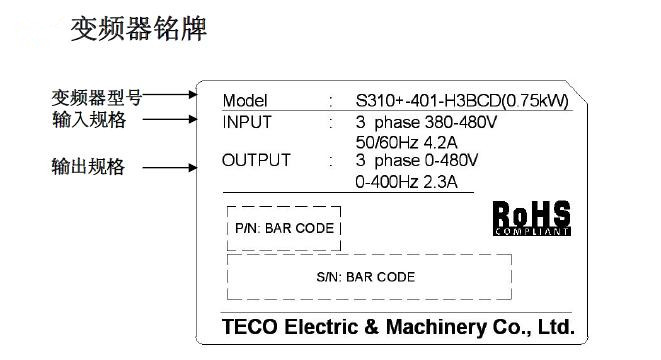 1、東元變頻器S310+功率、電壓范圍:220V 0.4-2.2KW、380V 0.75-3.7KW
